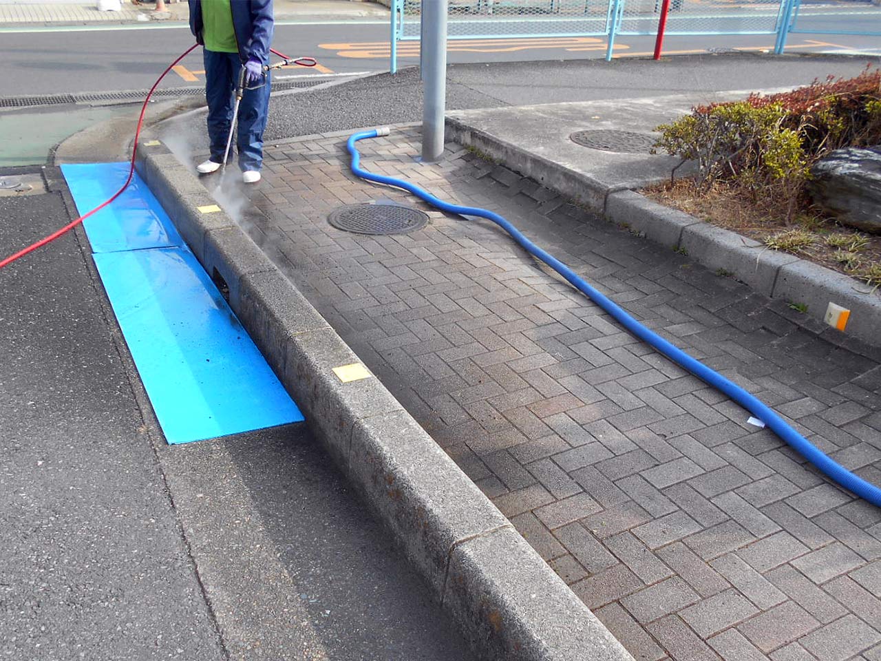 インターロッキングブロック舗装道路・歩道の洗浄清掃
